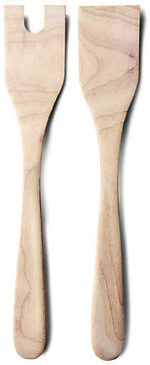 Just ordered these myself, as I served salad at our last party in New Hampshire with oversized soup spoons — classy I know!:) Farmhouse Pottery has these handmade Salad Servers in several different finishes ($48):